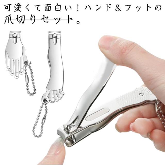 爪切り キーチェーン ミニ 折りたたみ式 キーホルダー ネイルカッター ハンド&フット 使い分け ネイルクリッパーセット シルバー 爪切り 旅行 キャンプ アウトドア用 子供用 携帯用 手足用 男女兼用 おもしろグッズ