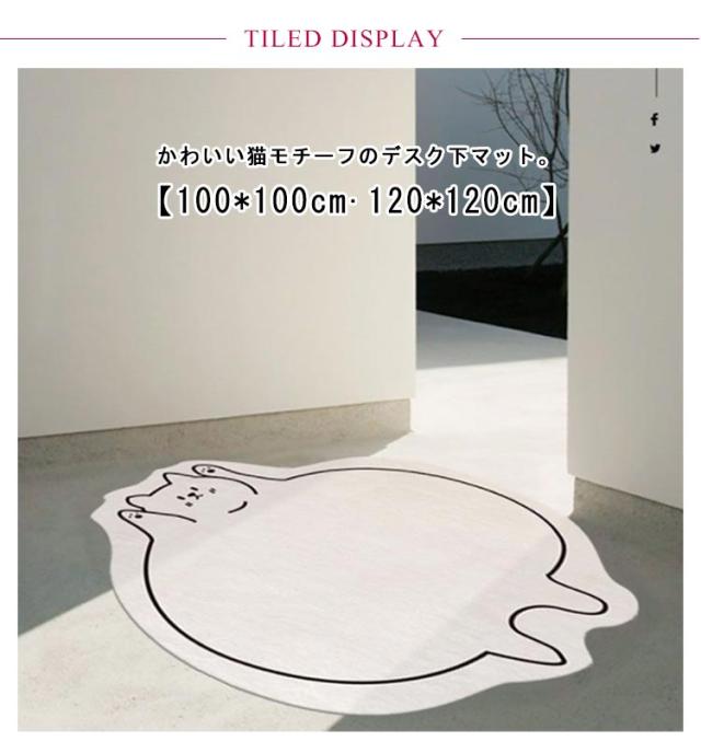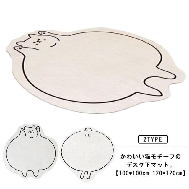 | かわいい猫モチーフのデスク下マット。【100*100cm?120*120cm】 これを一枚敷いたただけでお洒落なお部屋になります☆ 太い糸を使用したカットパイル仕上げで、踏み心地もふっくら快適 裏面にすべりにくい加工をしているので安心ですよ♪ デスク下に敷くだけで、キャスターによる床の傷付きを防ぐことができます デスクでの学習や、在宅勤務時におすすめです | |