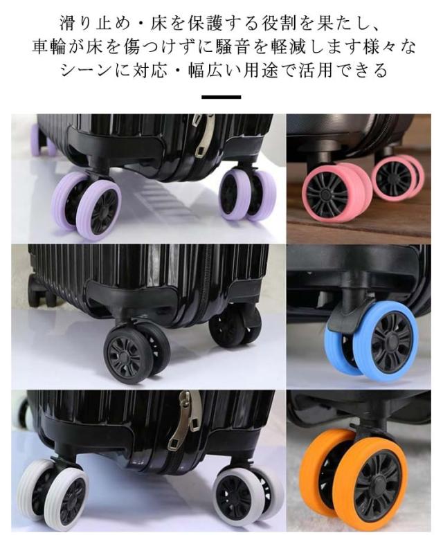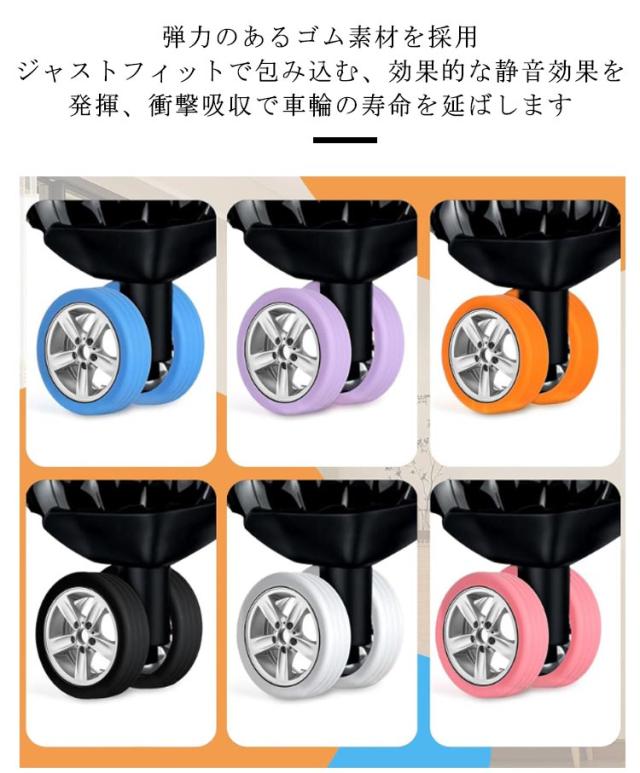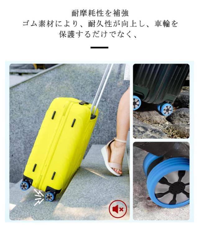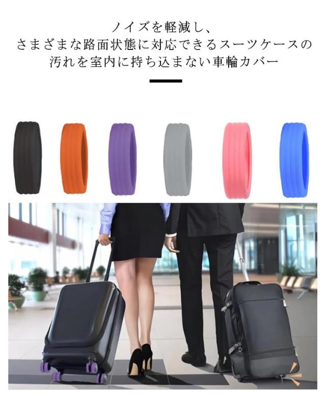 | ノイズを軽減し、さまざまな路面状態に対応できる スーツケースの汚れを室内に持ち込まない車輪カバー 弾力のあるゴム素材を採用 ジャストフィットで包み込む、効果的な静音効果を発揮、衝撃吸収で車輪の寿命を延ばします 耐摩耗性を補強 ゴム素材により、耐久性が向上し、車輪を保護するだけでなく、 滑り止め・床を保護する役割を果たし、車輪が床を傷つけずに騒音を軽減します 様々なシーンに対応・幅広い用途で活用できる | |