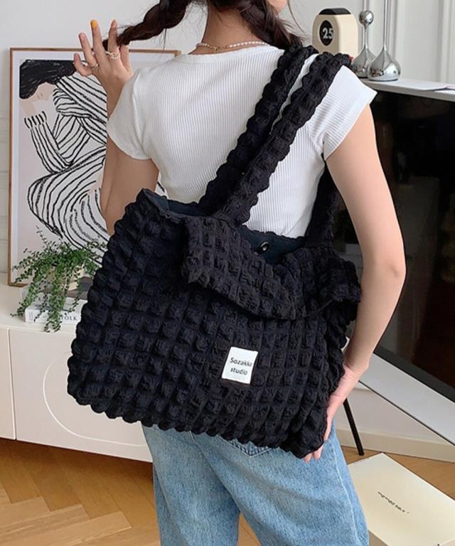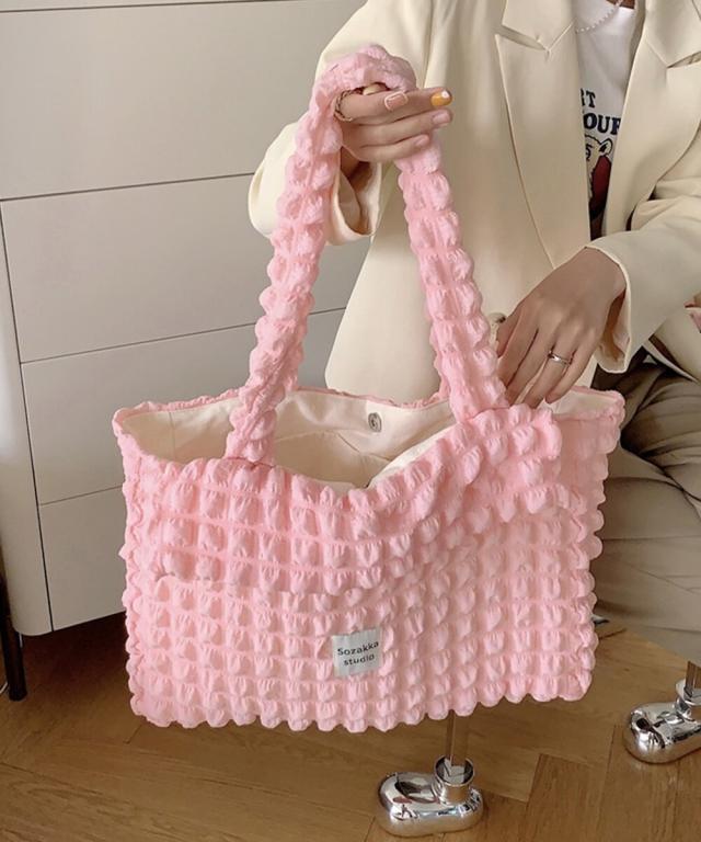 ぷくぷくした素材がかわいい!大容量ポップコーントートです。