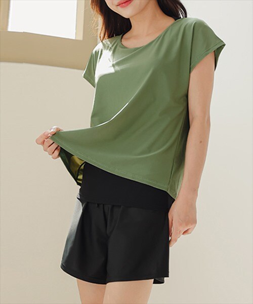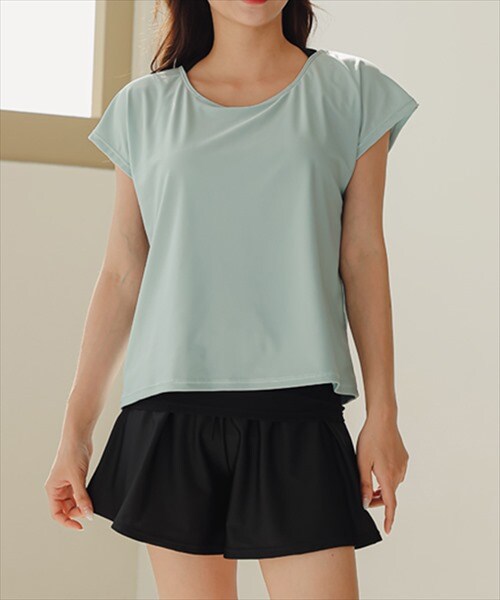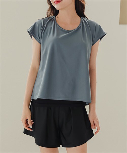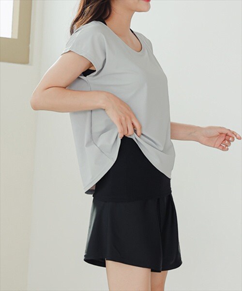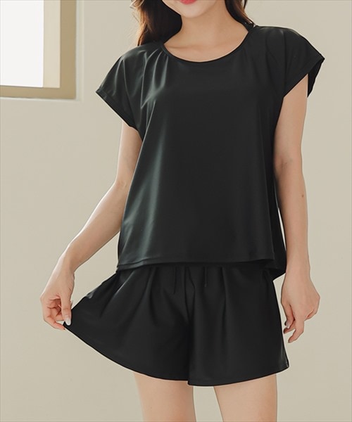 体型カバーも紫外線対策もこなせる2点セット水着です。