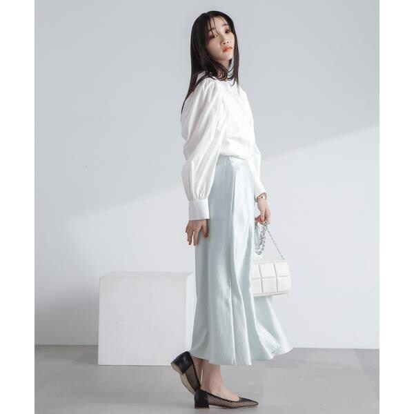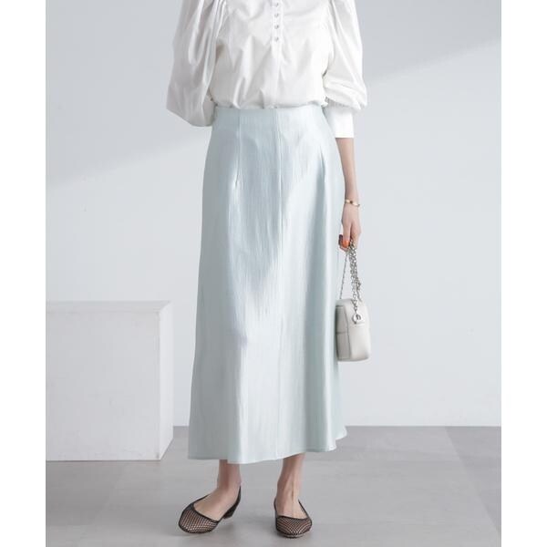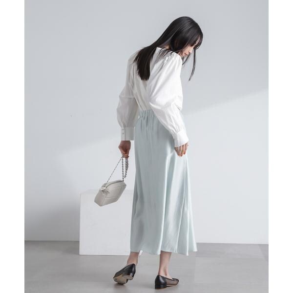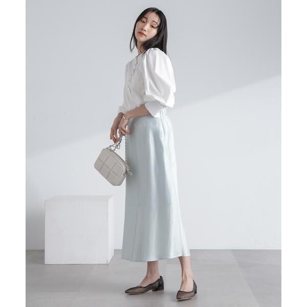 ・トレンド感あるシャイニー素材を品良く合わせられるロングスカート
