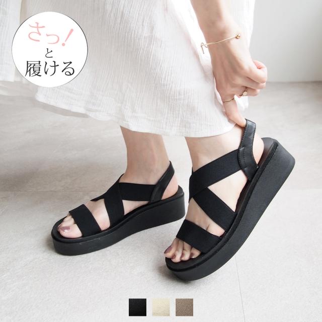 サッ!と履ける厚底コンフォートゴムフィットサンダル