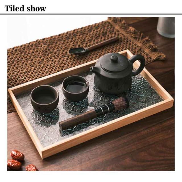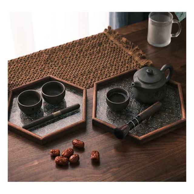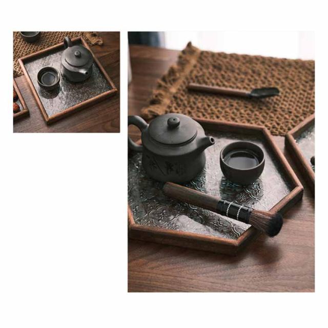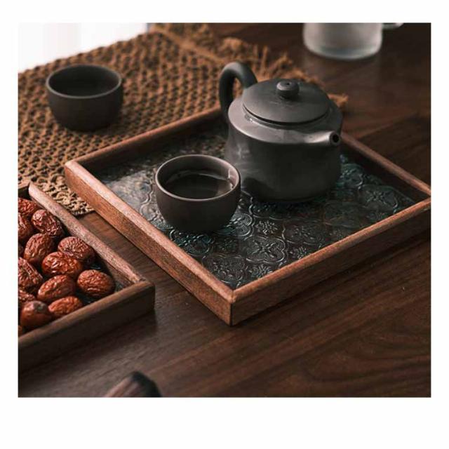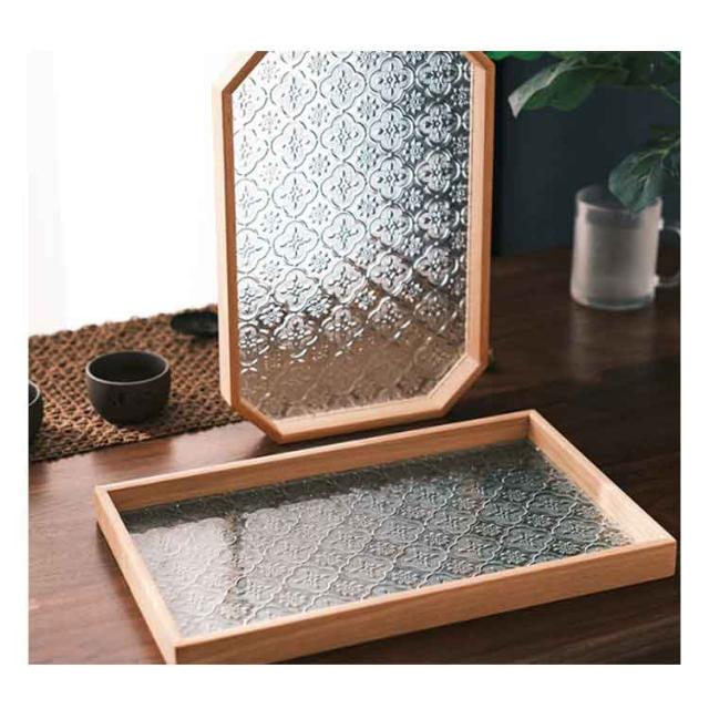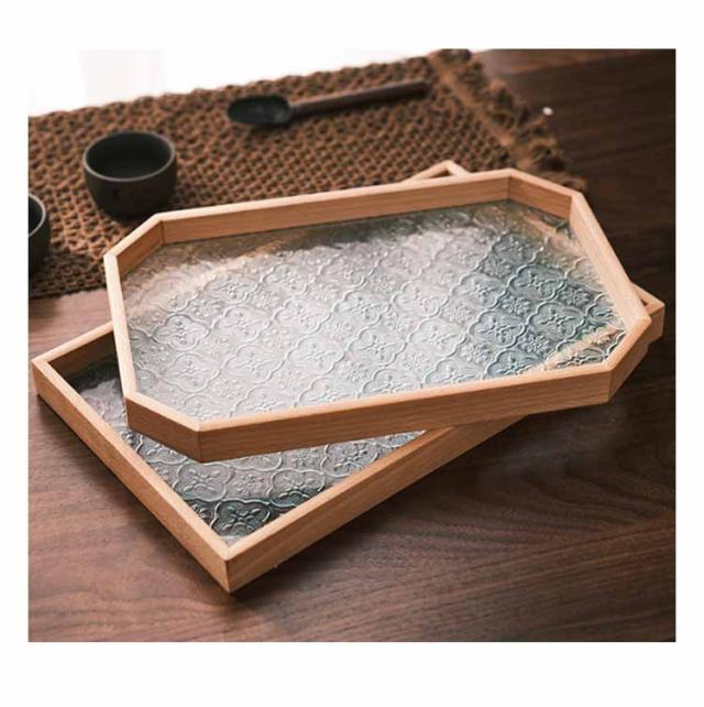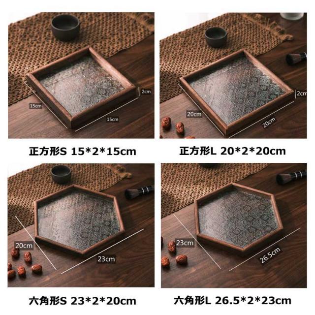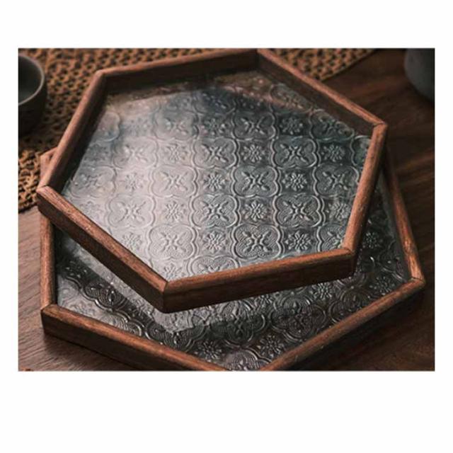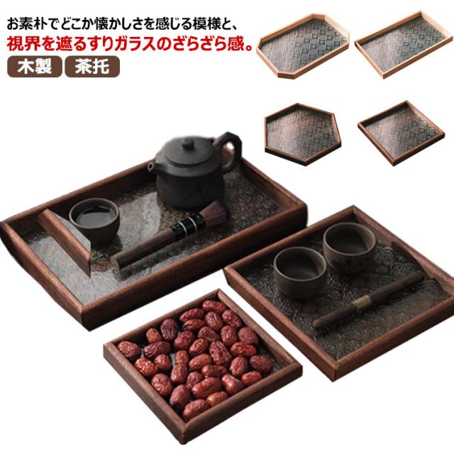 トレー カフェトレー ガラス 木製 茶托 ティートレー コーヒートレー おしゃれ お家カフェ 天然木 木のトレー 花海棠 木製トレー お盆 六角形 正方形 長方形 おしゃれ インテリア 小物入れ 茶道具 来客用 北欧 プレゼント ギフト