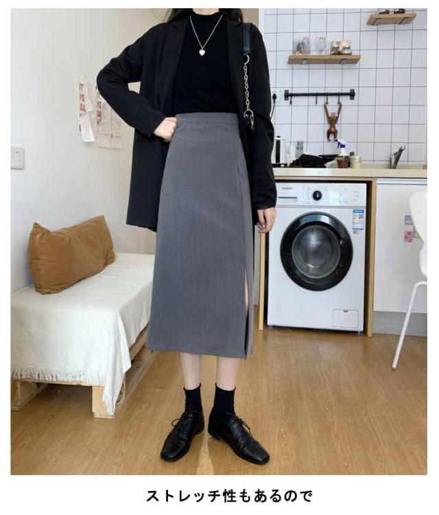 黒 通勤 無地 スカート 大きいサイズ スリット入り タイトスカート ハイウエスト ロングスカート ビジネス ボトムス 秋冬 レディース フォマール 仕事用 オフィス 就活 春夏 面接