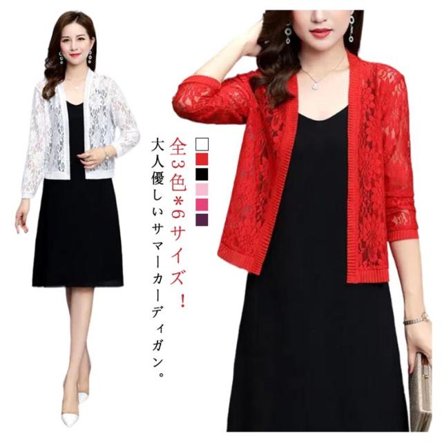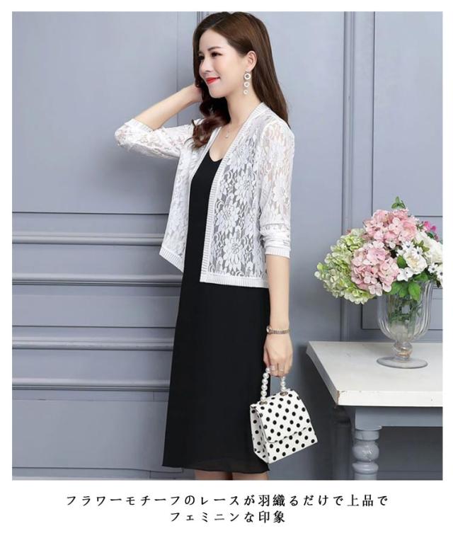 総レース カーディガン レディース 送料無料 羽織り 花柄レース ショート丈 フォーマル カジュアル 大きいサイズ 冷房 春 夏 秋 結婚式 お呼ばれ 二次会