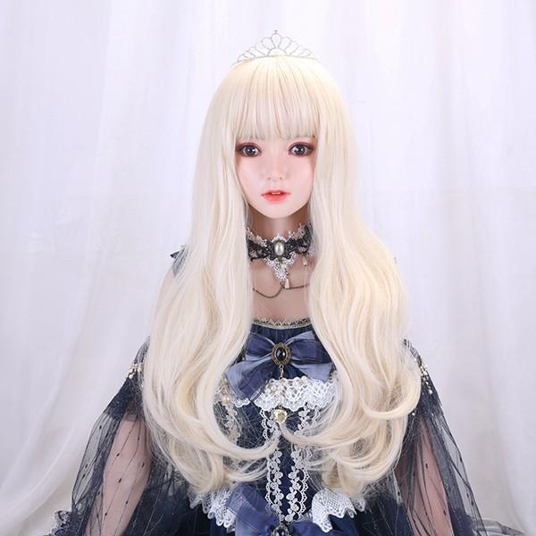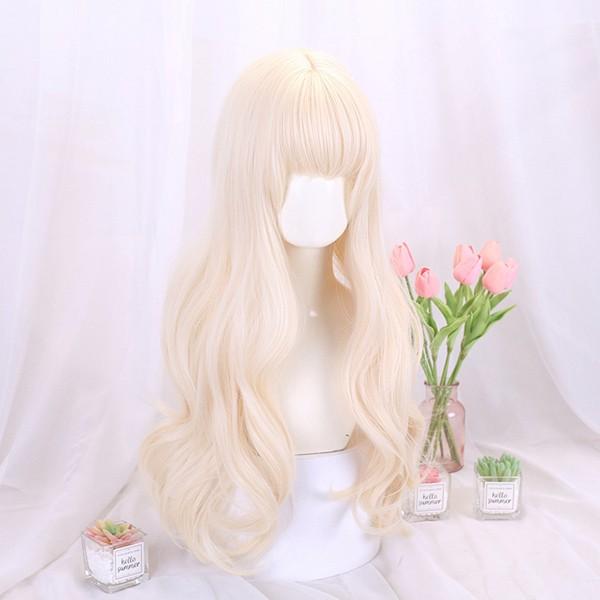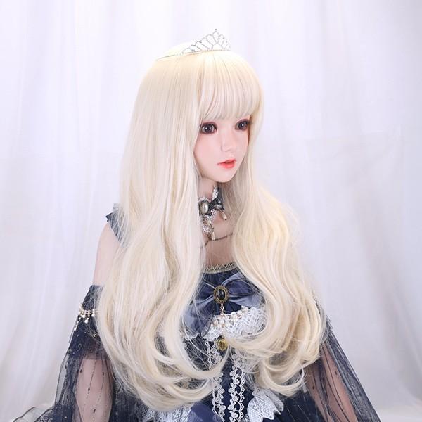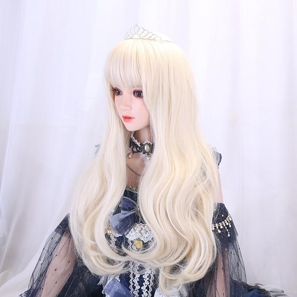 ウィッグ フルウィッグ 長髪 ゴールド ロング 巻き髪 ロングウィッグ ぱっつん前髪 前髪あり 原宿風 かつら コスプレ 可愛い コスチューム 仮装 大人用 文化祭 イベント 学園祭 演劇 舞台 学芸会 約68cm dp061jcjcm5