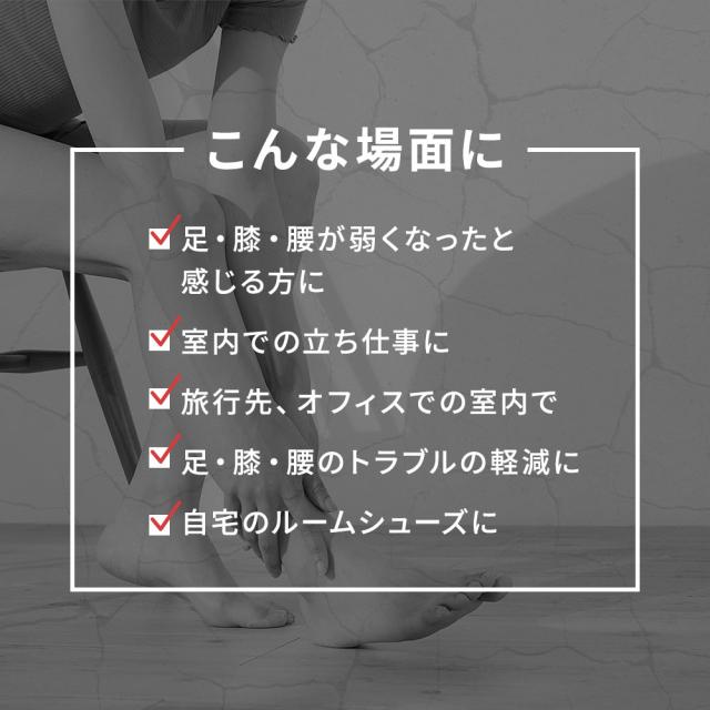 室内での立ち仕事や旅行先の室内など、様々なシーンでお使いいただけます。