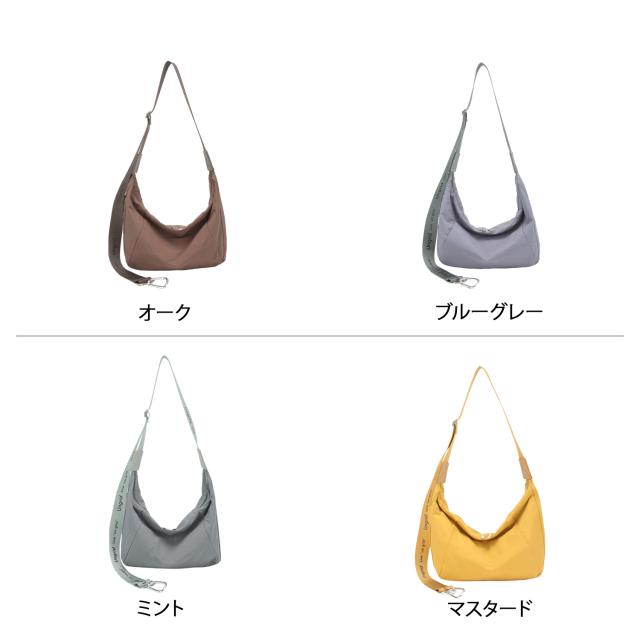 収納力抜群の撥水、軽量ナイロン大容量ショルダーバッグ長さ調節可能なショルダーベルトで、肩掛け・斜めがけも可能デイリー使いはもちろん、旅行やフェスなどにもぴったりのアイテム服に合わせやすい多彩なナチュラルアースカラーカラビナとキー収納ポケット付き大容量で軽く、ファスナー開閉で安心感があります。