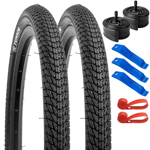 商品は20x1.75自転車タイヤX2本、自転車チューブX2本、自転車リムテープX2本、タイヤレバX3本を含む。