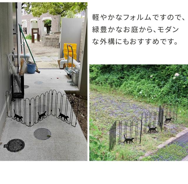 ●お気に入りのお庭には、可愛いフェンスしか置きたくない=^-^=置くだけで空間をおしゃれに仕切れる、猫ちゃんデザインのアイアンフェンス。