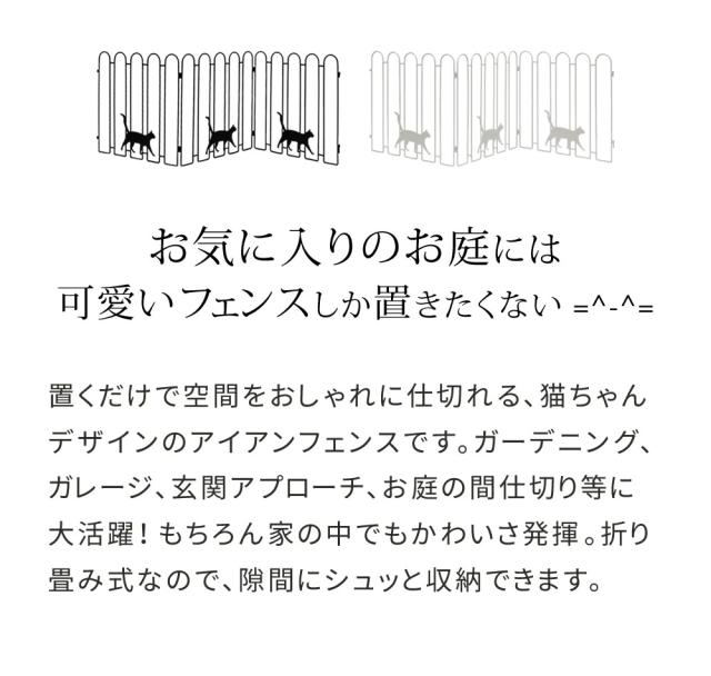 折り畳めるアイアンフェンス 猫3連 2枚組 ブラック/ホワイト NK120-2P