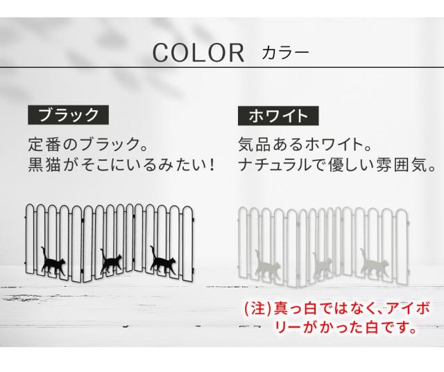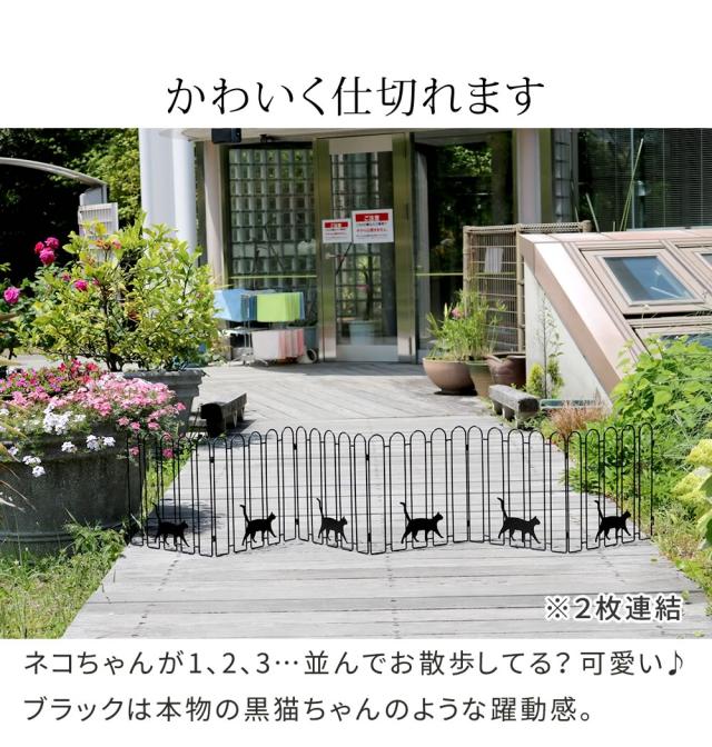 折り畳めるアイアンフェンス 猫3連 ブラック/ホワイト NK120