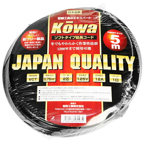 延長コード 12A×5m KOWA