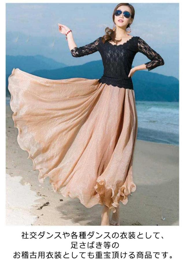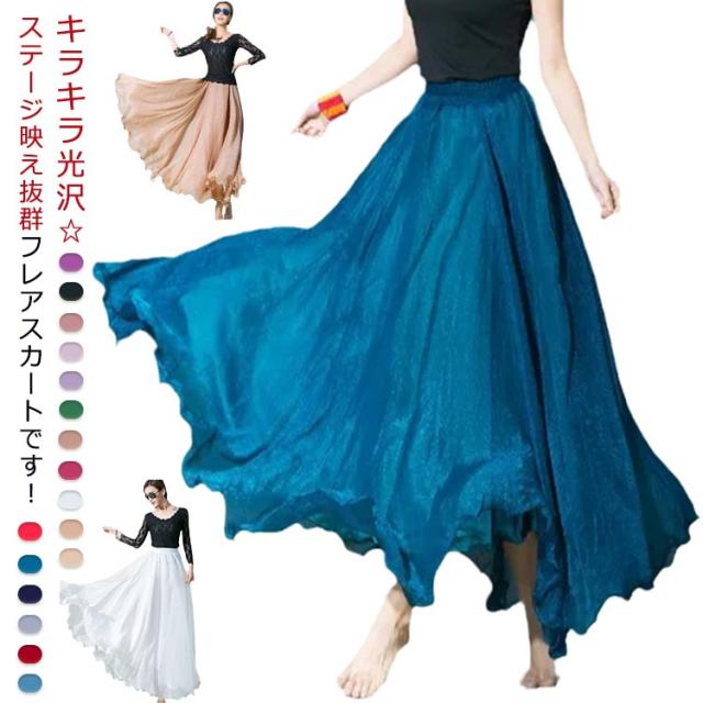 スカート 衣装 社交ダンス ステージ衣装 メタリックスカート ストレッチ ジャズダンス ステージ衣装 メッシュ フレア ロング丈 ウエストゴム シフォン ダンスウェア ロングスカート ベリーダンスウェア 舞台衣装 練習用