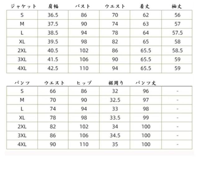 | サイズ | S M L XL 2XL 3XL 4XL |