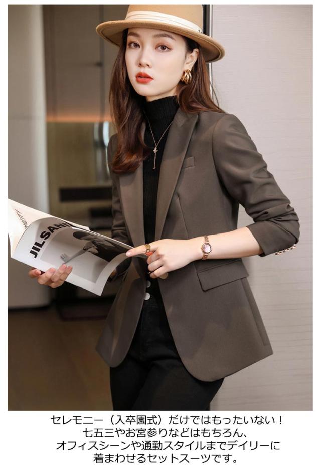 30代 フォーマルスーツ レディース 50代 ジャケット スーツ セレモニースーツ 40代 母 ママスーツ 20代 セットアップ 通勤 セレモニースーツ スーツセット 卒業式 入学式 パンツスーツ テーラードジャケット 一つボタン 裏地付き 黒 ブラック 茶色 ベージュ