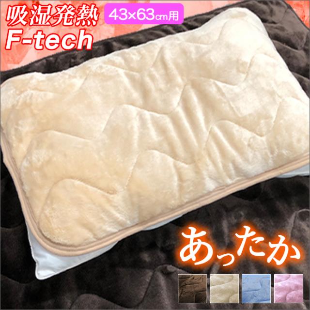 吸湿発熱 F-tech 枕パッド ピロパッド 暖か 保温 さらさら 43×63cm フランネル マイクロファイバー 敷きパッド シーツ 枕 まくら マクラ 抗菌 防臭 防カビ 清潔 メール便対応 代引き不可