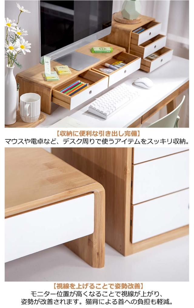 机上台 ディスプレイスタンド PC台 モニターラック パソコン台 キーボード収納 机上 幅50cm モニター台 収納 モニター台 シンプル モニタースタンド 引き出し付き デスク上置棚 幅60cm 卓上ラック 液晶モニター台 竹製 pcラック キーボード収納