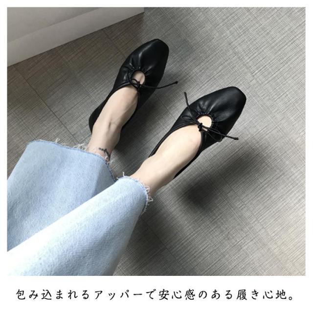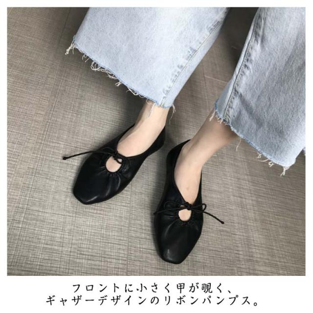 パンプス 走れる 走れるパンプス 履きやすい リボンギャザーパンプス レディース スクエアトゥ ぺたんこ チャンキーヒール 柔らかい 歩きやすい 痛くない 疲れにくい ギャザー リボン リボンギャザーパンプス レースアップ 子連れ