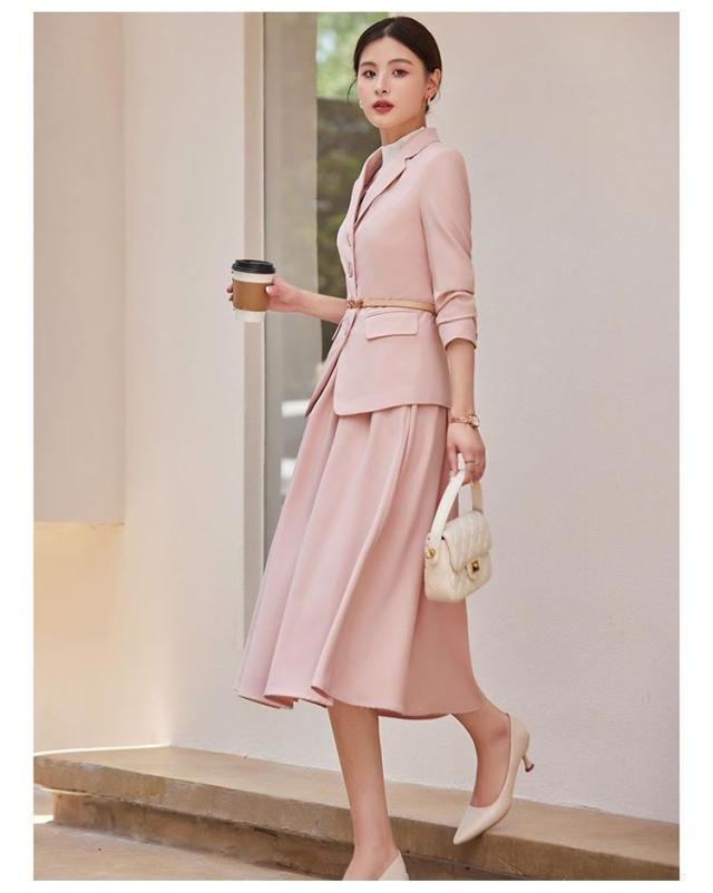 | テーラードジャケット&フレアスカートセットアップ。【スーツ地?裏地付き】 フィット感のあるジャケットと、レディライクなロングスカートでトレンド感あるスタイリングが完成 顔回りをすっきりと見せてくれるテーラード襟。 左右に便利なフラップポケット付きです。 さらりとした肌触りの裏地で、オールシーズン活躍できます。 スカート部分は裾に向かって広がるaラインシルエットで、今年らしいデザインになっています。下半身の体型カバー効果も◎! 長めの着丈なのでフォーマルなシーンにもぴったりのアイテムです。 セットで上品な着こなしが完成し、セレモニーから通勤まで幅広いシーンにおすすめです。 | |