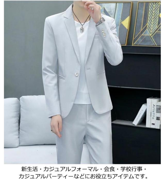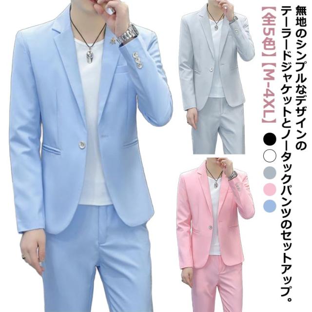 メンズスーツ カジュアルスーツ メンズ セレモニースーツ パーティー 細身 男性用 一つボタン 二次会 セットアップ 結婚式 スリムスーツ リクルートスーツ スリム ブラック 紳士服 演奏会 通勤 ジャケット 発表会 無地 黒 カジュアルスーツ 白 グレー ブルー ピンク