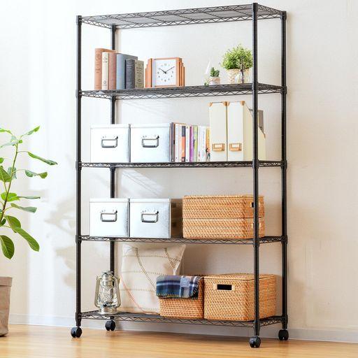 ドウシシャ ルミナス ノワール ラック 5段 幅110 奥行40 キャスター付き スチールラック 黒 ブラック 収納棚 おしゃれ キッチンラック サビに強い 組立簡単 幅111×奥行41×高178.5CM(キャスター…