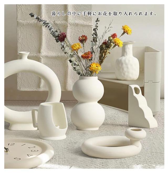 | 程よい大きさでリビングや玄関やベッドサイドなどにピッタリです。生け花や造花などをお部屋におしゃれに飾る事が出来ます。 シンプルなデザインなので、お部屋の雰囲気を選ばず、使いやすいフォルムです。どんなインテリアにも馴染みやすいです。 開口部が狭くなっていてお花が活けやすい、ボトル型のシルエット。無駄のないデザインは、さっと活けるだけでもサマになります。 玄関やリビング 、トイレ 、寝室などあらゆる場所に置きやすいサイズ感。暮らしの中に手軽にお花を取り入れられます。 | |