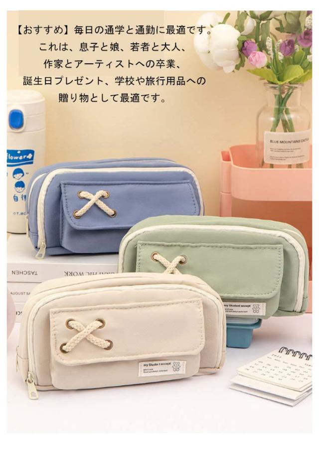 | クロスした紐がワンポイントの可愛いペンケース。 【大容量】ペン類が約50本入る大容量デザイン。消しゴム、付箋、ハサミ、定規、メジャー、修正テープなどの小物もたっぷり収容できます 【高品質キャンバス生地】高品質の生地で丁寧に縫製された筆箱、丈夫で軽く、清掃しやすく、汚れにくい、耐摩耗性に優れ、お手入れが簡単です。 【仕分け収納】ペンケースには3つの収納ポケットがあり、分類収納が可能。ペンや鉛筆、ラベル、修正テープなどなど分けて収納できるので、小物も探しやすく、時間短縮が可能です。 【おすすめ】毎日の通学と通勤に最適です。これは、息子と娘、若者と大人、作家とアーティストへの卒業、誕生日プレゼント、学校や旅行用品への贈り物として最適です。 【多機能使用】ペンケースだけでなく、女性には化粧ポーチとしても有効活用可能です。 | |