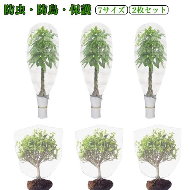 【2枚セット】植物保護カバー 防虫ネット 植物保護袋 園芸用ネット 網 鉢植え用 防鳥ネット ベランダ DIY 果樹園 みかん 鳥よけ ネット 巾着式 プランター 菜園 虫除け 簡単 観葉植物 虫害対策 野菜網 園芸用品 7サイズ