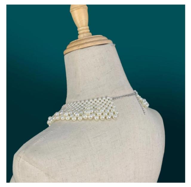 パール 大粒パール 上品 フリル パールカラーネックレス つけ襟 ネックレス 小粒パール つけえり 結婚式 パールックレス ドレス 用 ウェディング パール お出かけ お呼ばれ フォーマル ガーリー エレガント アジャスター付き