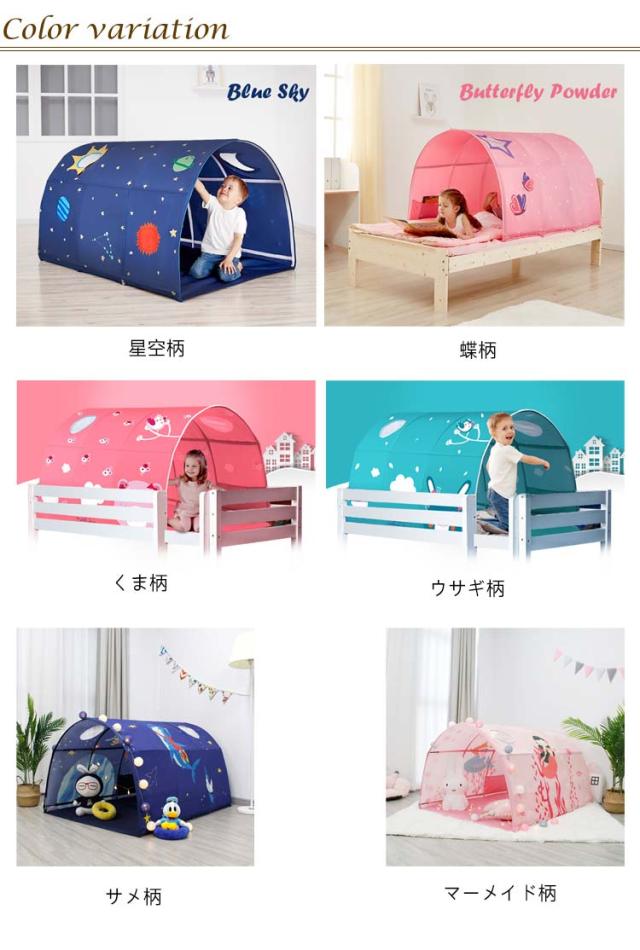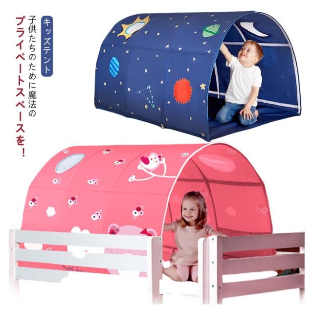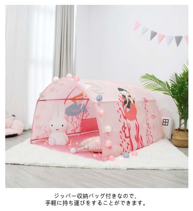 キッズテント 室内 子供 テント ベッド 風よけ 落下防止 遮光 蚊帳 トンネル ボールプール キッズスペース キッズハウス 子供部屋 こども テント 室内用 キッズハウス プレイテント 秘密基地 シークレットベース 隠れ家 誕生日プレゼント おもちゃ テント