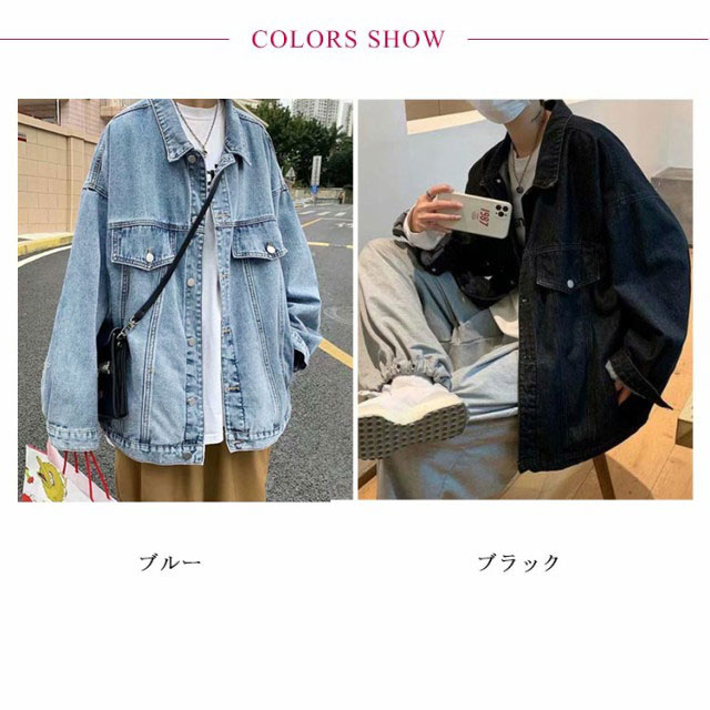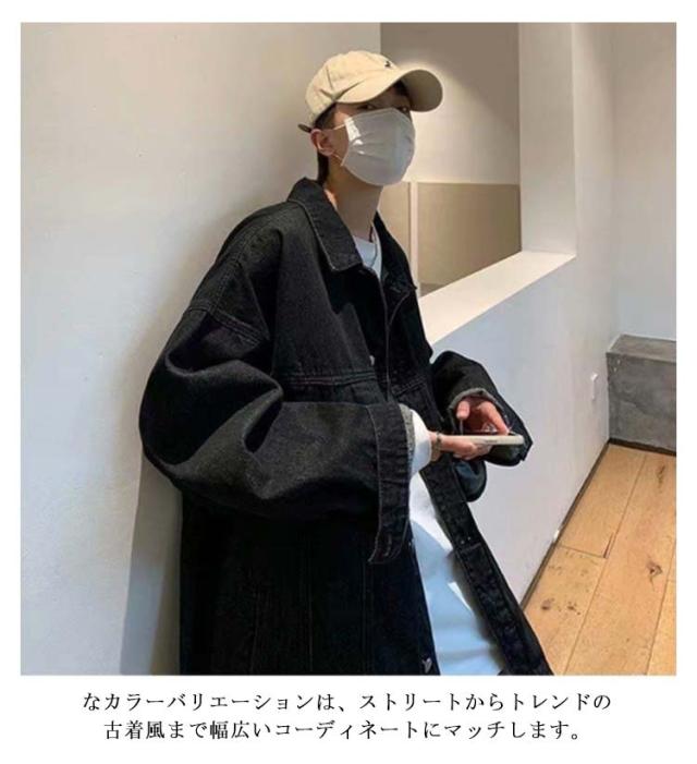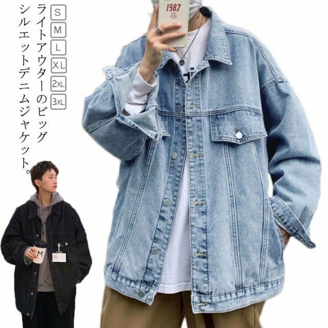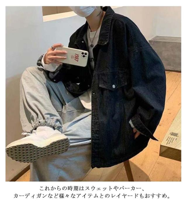 デニムジャケット メンズ 春 アウター Gジャン ジージャン オーバーサイズ ビッグシルエット デニム ジャケット ブルゾン メンズアウター カジュアルジャケット 春服 ライトアウター 羽織り ルーズ 大きいサイズ シンプル 学生 大人 カジュアル 黒 ブラック 【送無】
