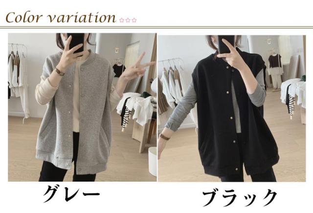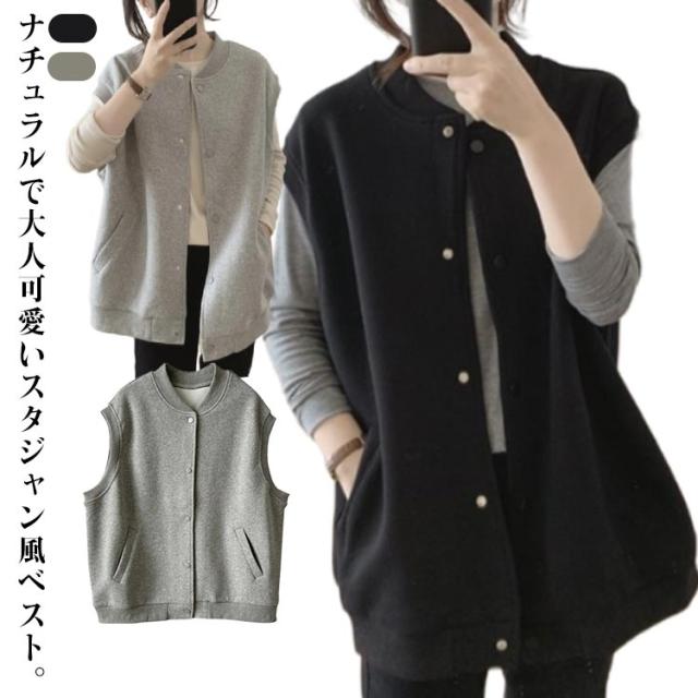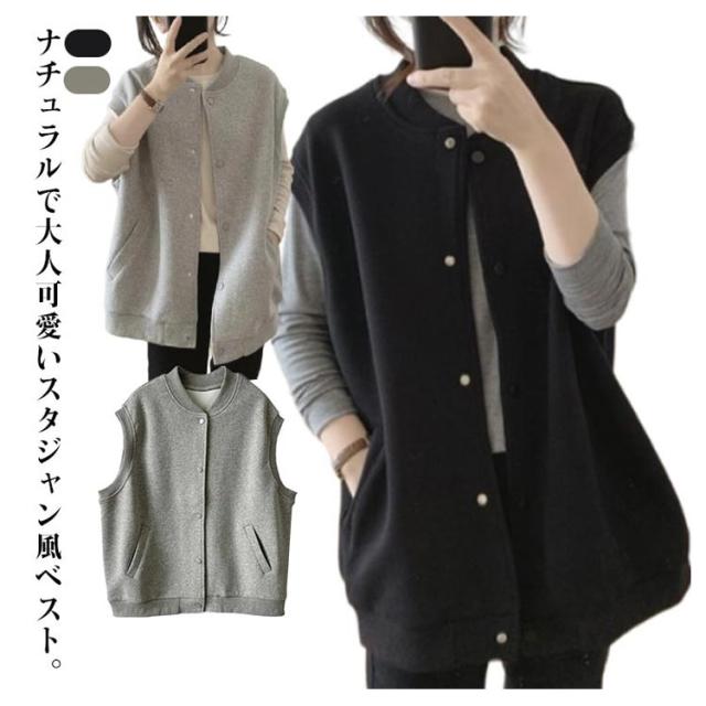 スタジャン ベスト レディース 前開き カーディガン スウエットベスト パーカー ノースリーブ 羽織 アウター ノースリーブパーカー 体型カバー 大人可愛い