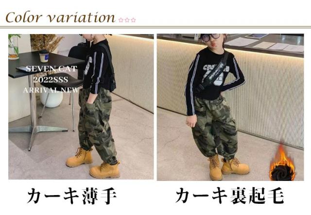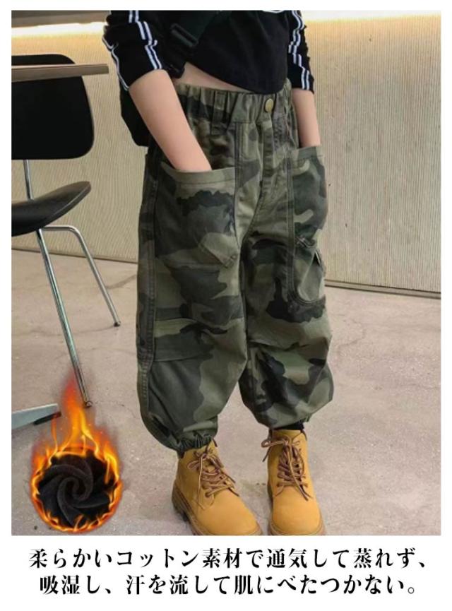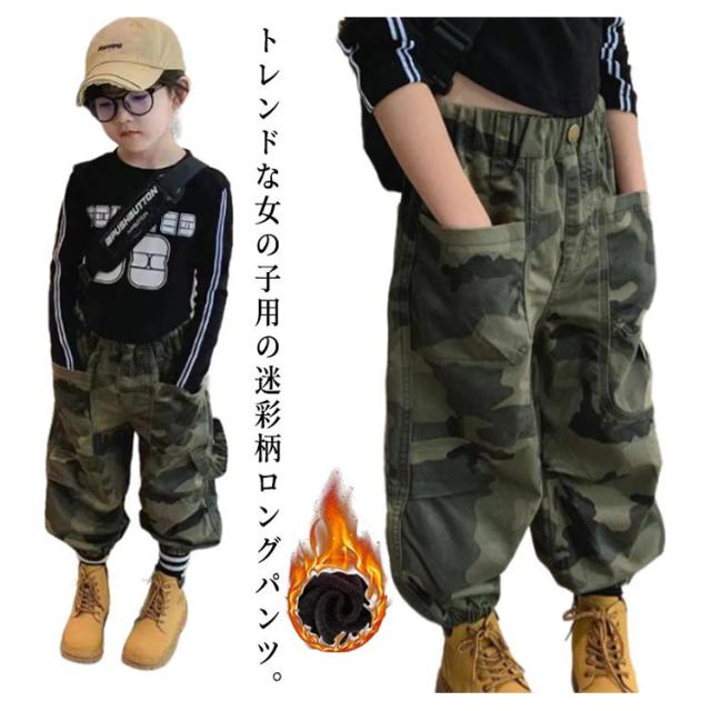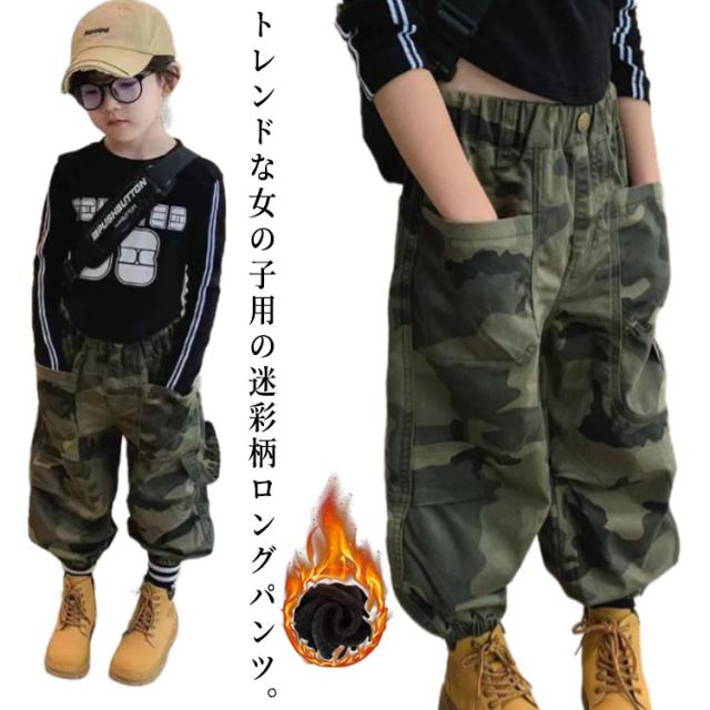 カーゴパンツ 子供服 キッズ 女の子 ロングパンツ ズボン パンツ ボトムス 迷彩柄 ジョガーパンツ 裏起毛 ウエストゴム ジュニア ポケット付き 110 120 130 140 150 160