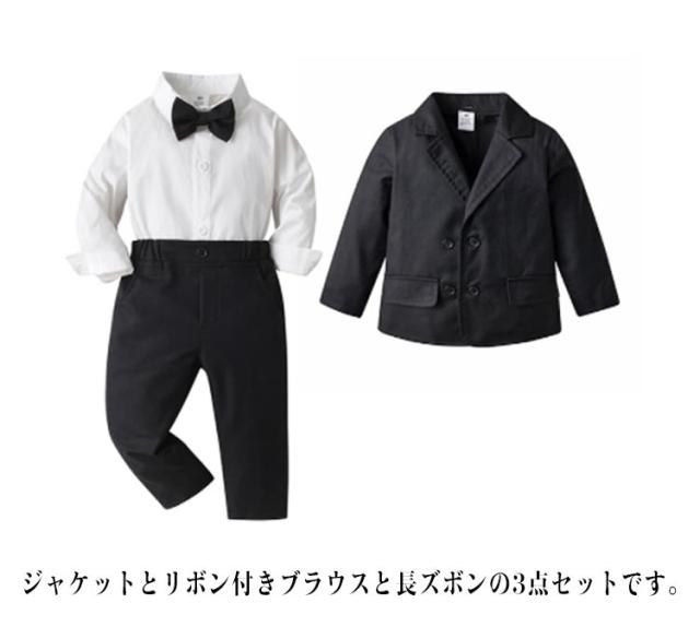 子供服 フォーマル 男の子 ベビースーツ 3点セット 白シャツ ジャケット 長ズボン ベビー キッズ スーツ おしゃれ 綿 百日祝い 蝶ネクタイ 七五三 結婚式 発表会 記念撮影 パーティー