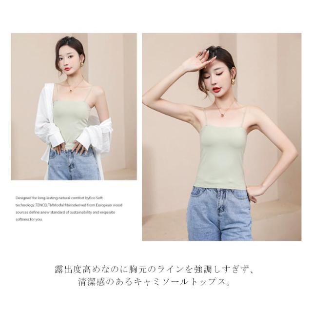 | 韓国デザインのブラ不要のバストパッド付スラッシュドネックインナーキャミソール。 ジャケットやシャツのインナー着としてはもちろん、カップ付きだからこれ一枚で着てもOKなトップスです。 通気性に優れているので蒸し暑くなく、固定バストカップでズレる心配なし、ノンワイヤーでストレスゼロの着心地。 高ストレッチ丸ゴム肩紐でしっかりとした安定感。 ベアトップ風の直線ラインで見えてもおしゃれ! 露出度高めなのに胸元のラインを強調しすぎず、清潔感のあるキャミソールトップス。 | |