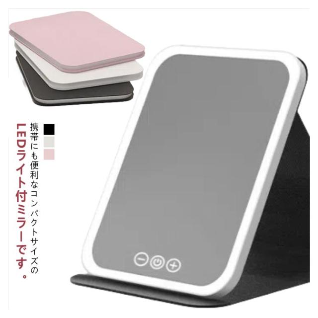 携帯便利!LEDライト付ミラー 卓上ミラー 折りたたみ 女優ミラー 卓上ミラー 化粧鏡 卓上 鏡 ライトミラー LEDミラー メイクミラー ライト付き 3色調光 タッチボタン 角度調整可能 折りたたみ 卓上 手鏡 かがみ ホワイト ピンク ブラック