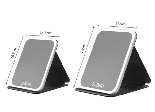 | 携帯にも便利なコンパクトサイズのLEDライト付ミラーです。 高輝度LEDでお出かけの時もキレイにメイクが出来ます。もちろん軽量なUSB充電式(バッテリー内蔵)です。 ボタンをタッチすると3色モードに切り替わり、長押しすると明るさを調整できます。朝や夜の暗い時間帯でも、簡単にお化粧ができます。 バックに入れてもかさばらず、外出先でのメイク直しにも便利なサイズです。 フタが付いているので、使わないときはコンパクトに収納でき、持ち運びにも便利です。 また、鏡が勝手に開いてしまうのを防ぎ、清潔に保つことができます。 | |