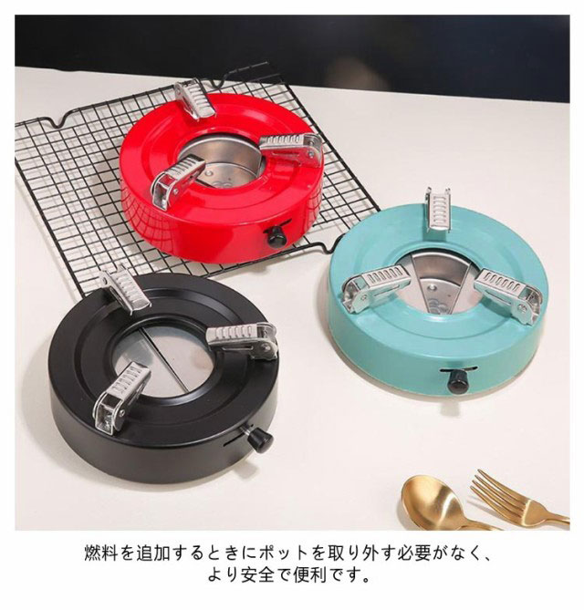 アルコール ストーブ バーナー 卓上のコンロ 卓上 一人鍋用 コンロ 車中泊 アウトドア キャンプ 災害 停電後の緊急使用 安定させる 安全性 固形燃料の交換が簡単 激しい火力 制御可能 お手入れと保管が簡単 シルバー ゴールド ブルー ブラック レッド