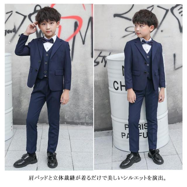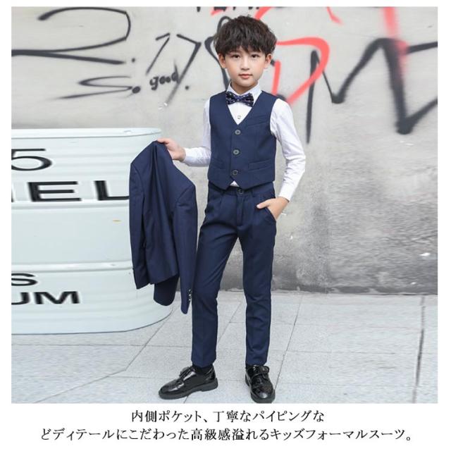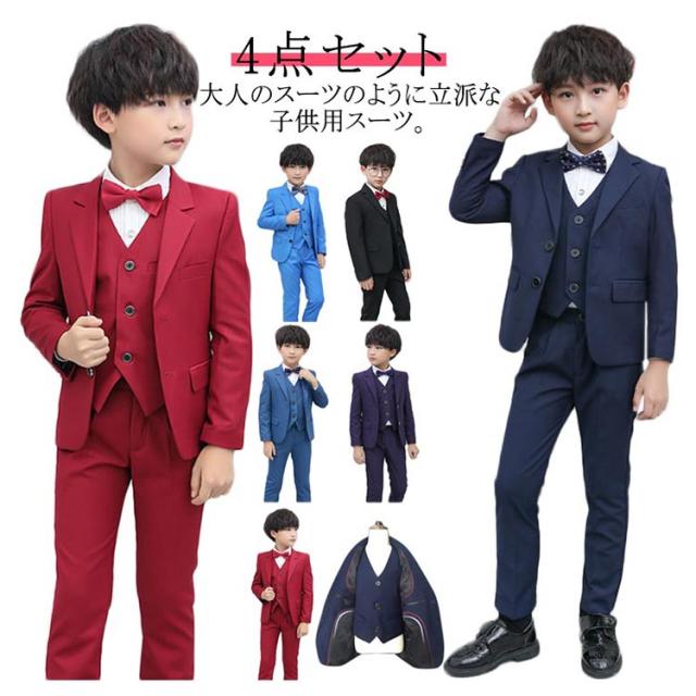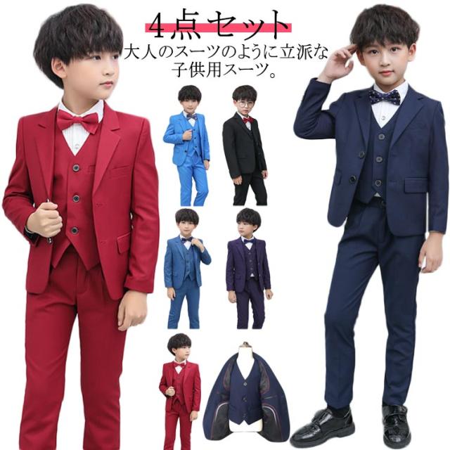 卒業式 スーツ 入学式スーツ 男の子 4点セット キッズ 子供 フォーマルスーツ 子供スーツ 無地 フォーマル 小学生 中学生 140cm 170cm 110cm コンクール ピアノ 発表会 高級感 シワになりにくい 結婚式 黒 法事 お掃除 七五三 入園式 卒園式 供服