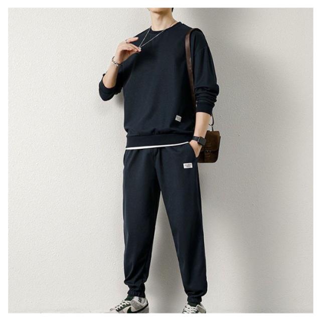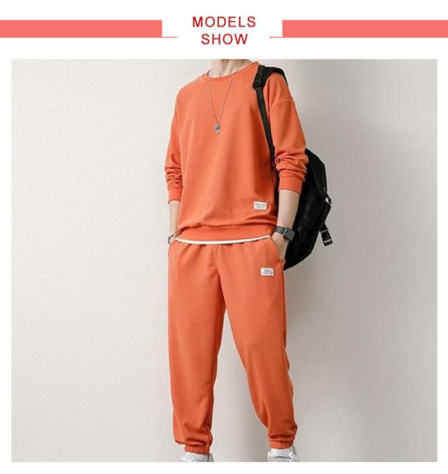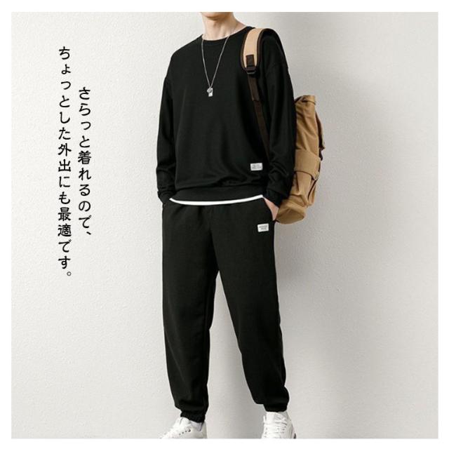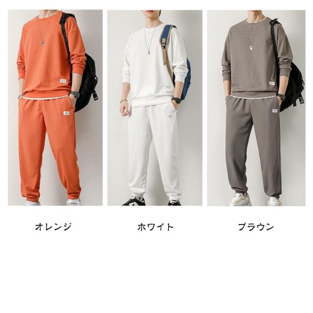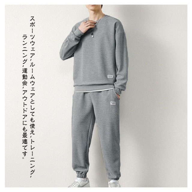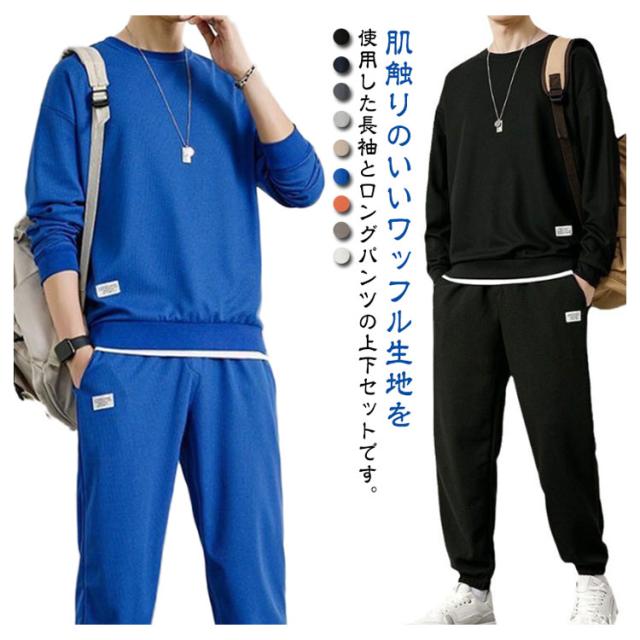 長袖 上下セット メンズ トレーナー セットアップ ワッフル生地 長袖tシャツ ロングパンツ 長ズボン 無地 シンプル 裾ゴム 韓国 おしゃれ スポーツウェア トレーニングウェア 運動着 春 秋 冬 部屋着 ルームウェア 学生 大人 送料無料