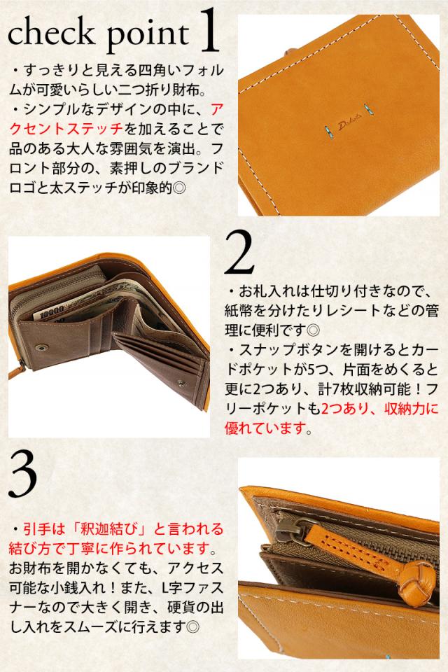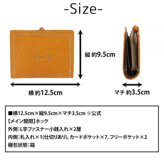 商品:ダコタ 財布 二つ折り財布 折財布 ホック開閉 L字ファスナー小銭入れ Dakota ピアッタ 31531 天然革 経年変化 レディース