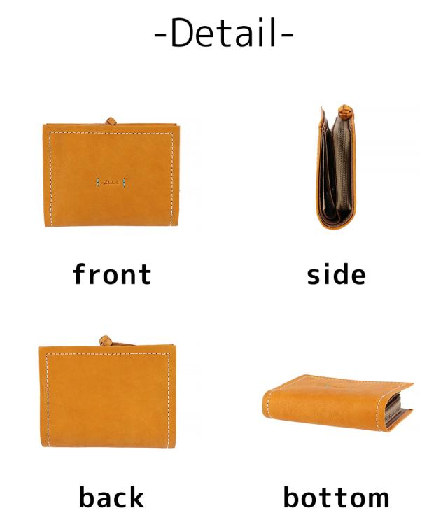 財布の端を折り紙のように折り返し、中作りとともに太ステッチでまとめる技法で仕立てました。