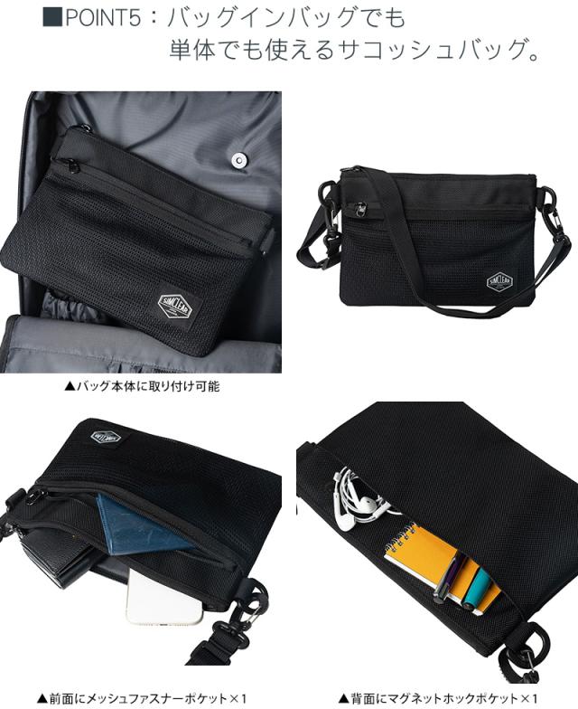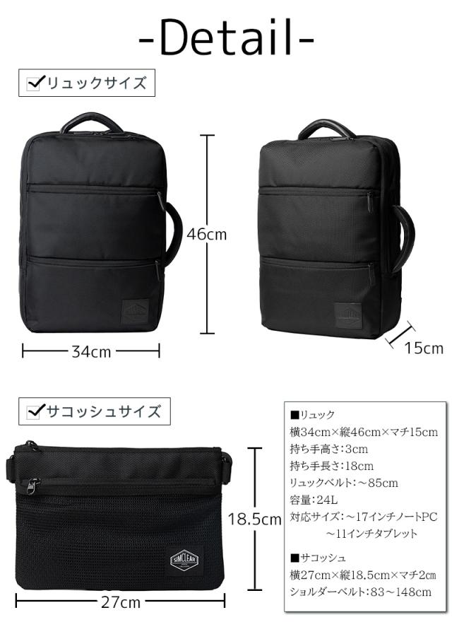 | サイズ(約) ※当店実寸値 | ■本体 公式サイズ 横34cm×縦46cm×マチ15cm 【持ち手高さ】3cm(トップ・サイド同サイズ) 【持ち手長さ】18cm(幅3cm、トップ・サイド同サイズ) 【リュックベルト】〜85cm 【容量】24L 【対応サイズ】〜17インチノートPC、〜11インチタブレット ■サコッシュ 公式サイズ 横27cm×縦18.5cm×マチ2cm 【ショルダーベルト】83cm〜148cm(幅2.5cm、取外し可) | ||