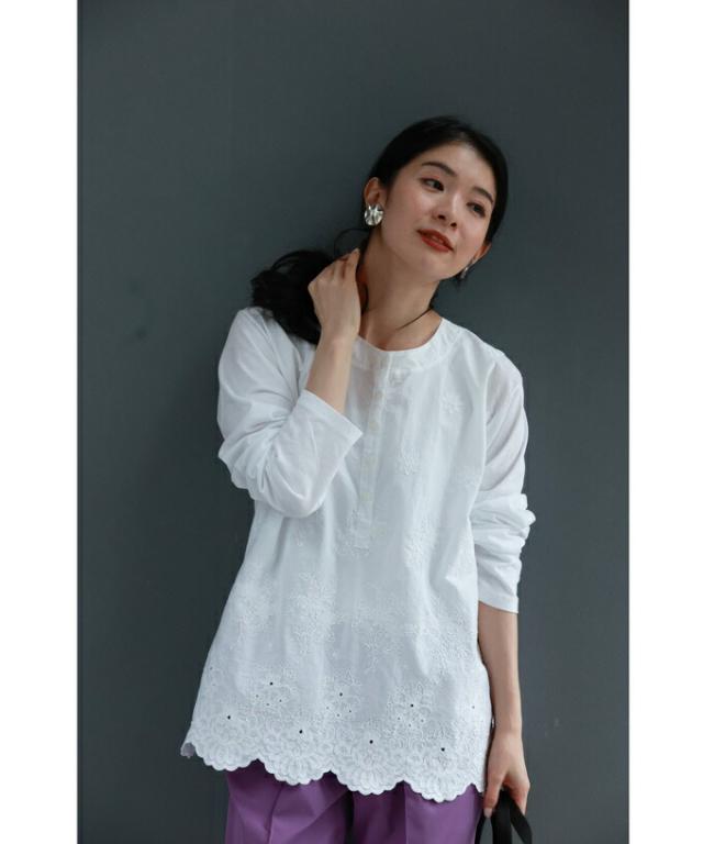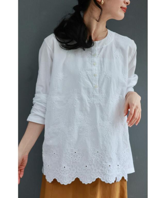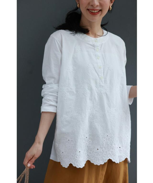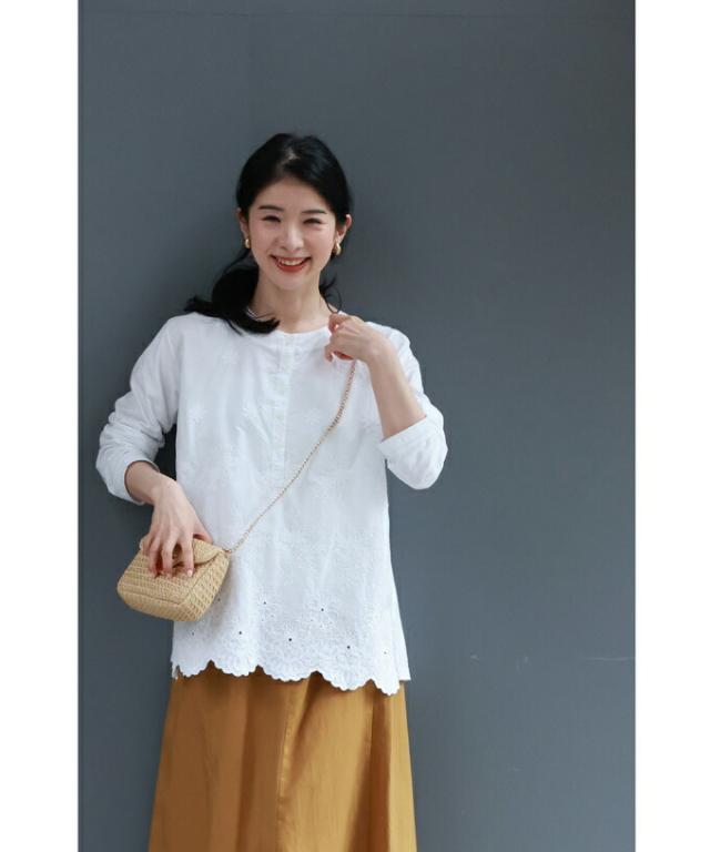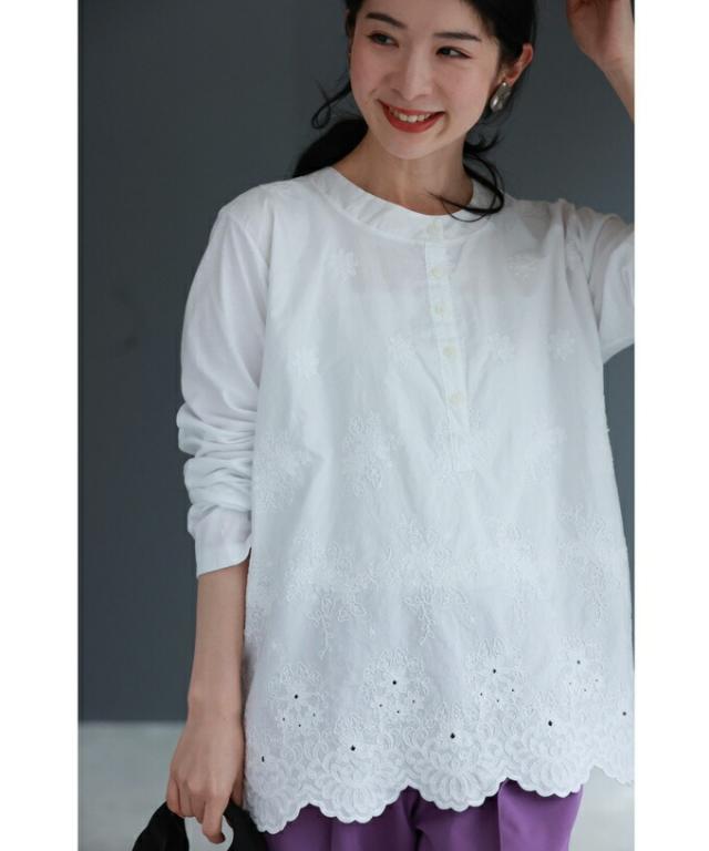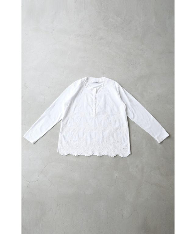 wkg00638 新作 新着 再入荷 CAWAII FRENCHPAVE フレンチパヴェ エレガント ベーシック カジュアル 可愛い かわいい カワイイ おしゃれ オシャレ お洒落 個性 個性的 定番 ベーシック 大人かわいい 大人可愛い 上品 女性らしい デザイン スタンダード ナチュラル きれいめ キレイめ シンプル フェミニン レディース レディースファッション 大人 ママ ミセス 30代 40代 50代 60代 異素材合わせ 白花 レリーフ刺繍 カットソー トップス 長袖 長そで ロング袖 丸首 クルーネック S M L フリーサイズ フリー 小さめ 小さめサイズ小さい 小さいサイズ 低身長 痩せ ほっそり 小柄 細身 標準サイズ 大きめシルエット 大きい 大きめ ビッグシルエット ぽっちゃり F サイズ自由 春 秋 冬 春夏 秋服 秋物 春服 春物 着回し 重ね着 レイヤード ホワイト 白 白色 無地 ワンカラー ワントーン 刺繍 花 花柄 フラワー柄 日常着 普段着 日常使い オフィスカジュアル おでかけ 旅行 家族旅行 女子会 同窓会 授業参観 保護者懇談会 三者面談 綿100% コットン コットン100% 天然素材