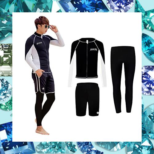 ◆商品名:[YFMAYI] ラッシュガード メンズ 水着 長袖 レギンス サーフパンツ フィットネス 水泳 水陸両用 3点セット