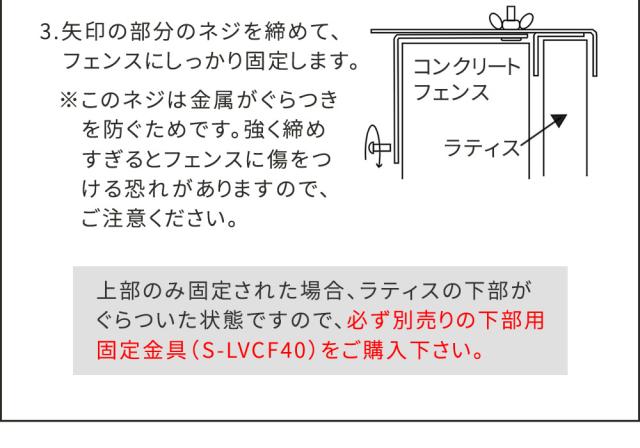 ベランダや塀などのコンクリートフェンスに、ラティスやフェンスを固定したい時に。