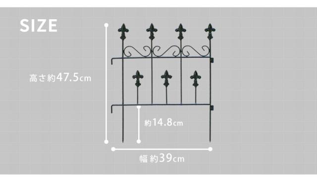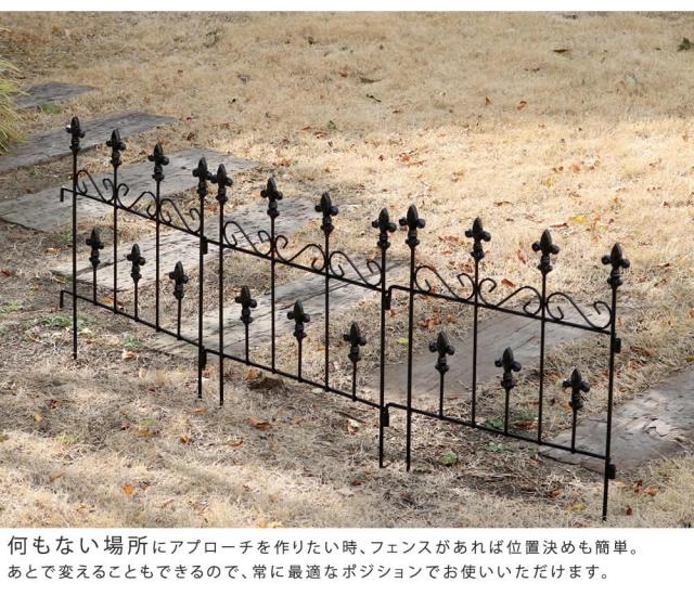 | 均整のとれた優雅な佇まいと、ヨーロッパの古城のような麗しさ。 プロのガーデナーが手がけたようなお庭に。 深い森の中に建つ石造りの古城…そんな雰囲気を漂わせる、繊細で風雅なデザインのアイアンフェンスです。 ちょっとさびしい玄関付近や、外壁沿いの味気ない花壇などに、華やかで高級感のあるフェンスをプラスすれば、立体感・躍動感が生まれます。 エッジングに絶妙のサイズ感。 高さ47.5×幅39cmのスティックタイプは、花壇や立ち入ってほしくないエリアのエッジングに最適です。 複数枚をお好きな角度で連結できるので、正方形・長方形の花壇はもちろん、少しずつ角度をつけて円形の花壇を作ることも可能です。 設置は簡単、連結して地面に刺すだけ。 工事や見積もりといった面倒な手間をかけずに、まるで造り付けのようなフェンスが設置できます。 |