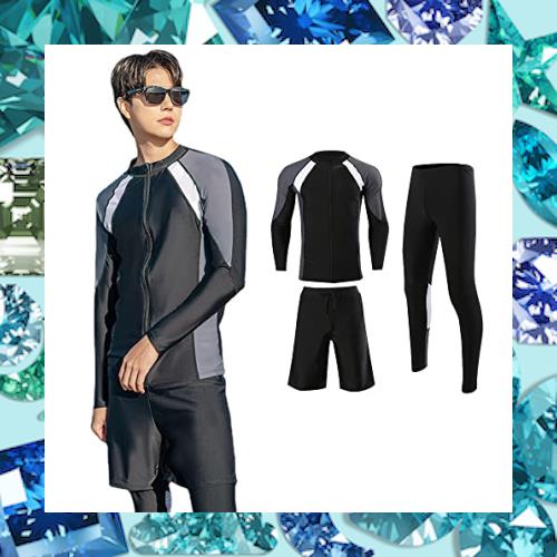 [YFMAYI] ラッシュガード メンズ 水着 フィットネス 3点セット UVカット 長袖 前開き 水陸両用 水泳 吸汗 速乾